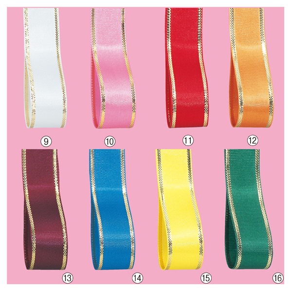 ゴールドエッジの定番リボン。表裏のない素材にゴールドエッジが両面に印刷されているので表裏を気にせずにご使用いただけラッピングをよりやさしく楽しめます。
