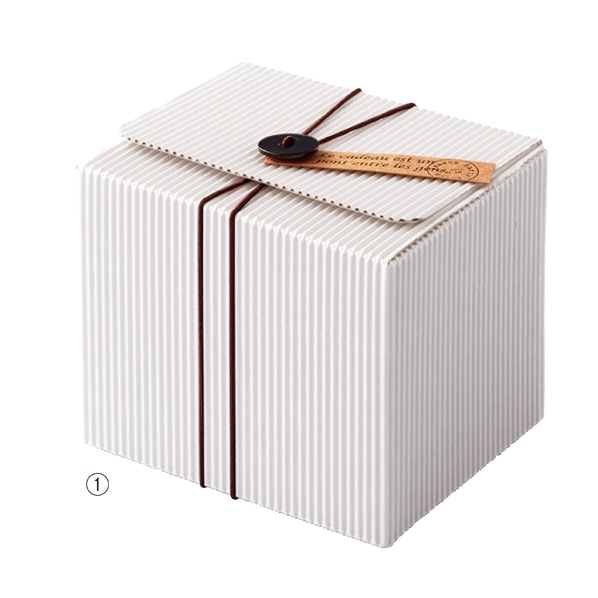 素材感のある片面段ボールを使用したギフトボックスです。ボタンのゴムタグ付きなので、簡単に素敵なギフトの完成です。