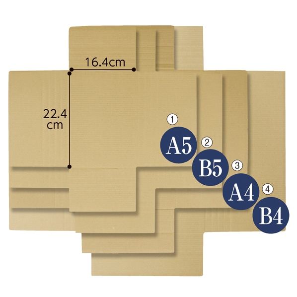 B4・A4・B5・A5サイズに適応した発送ボックス。カタログや書籍などの発送に便利なタトウ式ダンボールです。