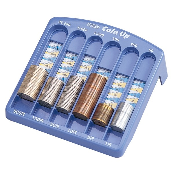 硬貨を積み重ね、上部に見える一番左端の数字が合計金額となります。5枚単位で色分けしてあり、金額が一目で分かります。【レジスター・キャッシャー関連商品】
