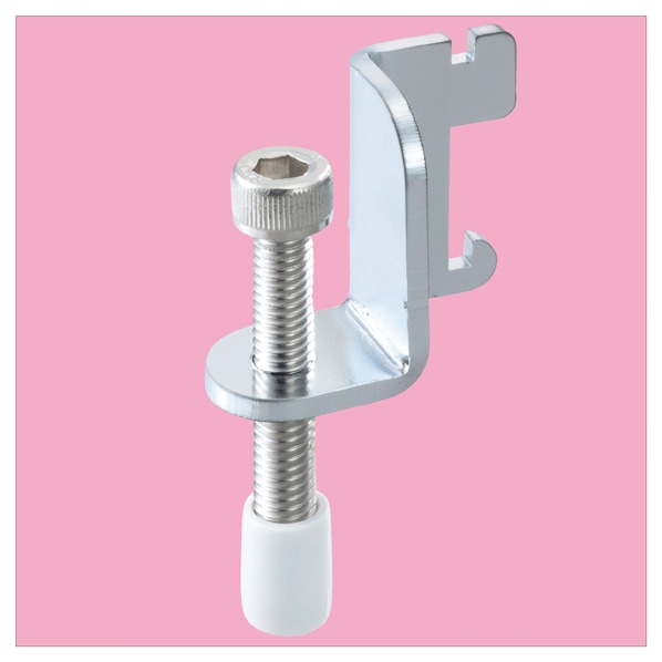 スリットに引っ掛けてネジを手で締めるだけの取り付け簡単な、棚板の跳ね上がり防止用部材です。5~10mm厚の透明棚・18~35mm厚の木棚用です。