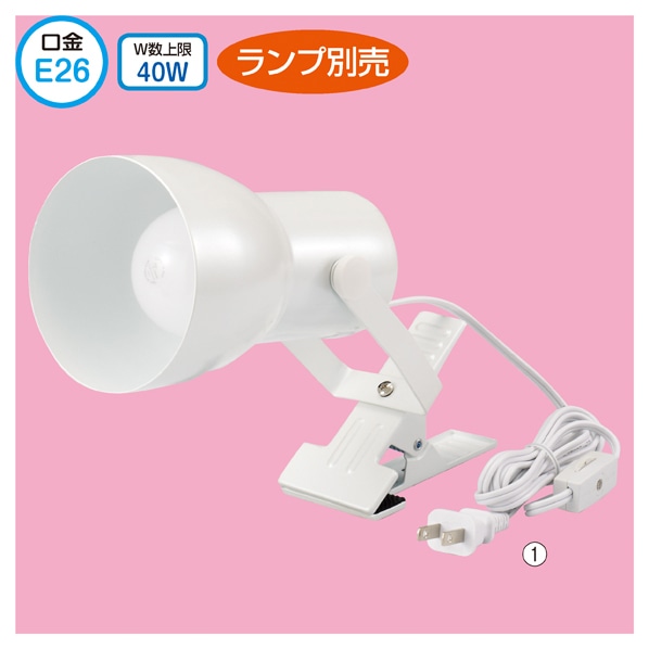 クリップ:1.9~3.3cmまではさめます。 ランプ別売 対応ランプは消費電力40Wまでの一般電球をご使用ください。