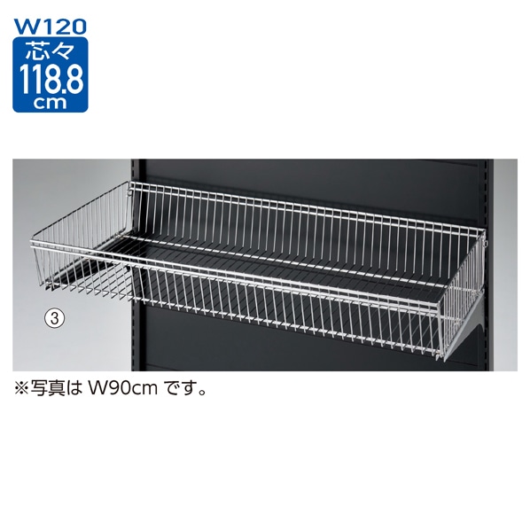 ワイヤーバスケットセット 3段可変式 幅120cm ブラックブラケットタイプ