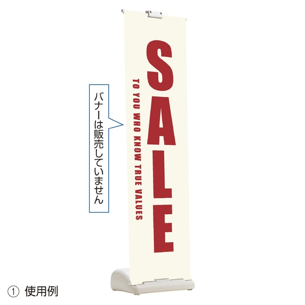 メディアに合わせて高さを伸縮調整できるスライド式バナー。 注水タンク付きなので倒れにくい。