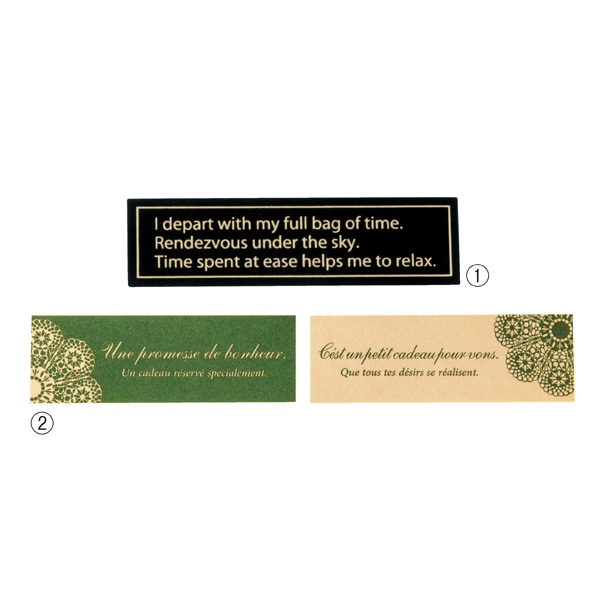 (1)コート紙 箔押し(2)(3)上質紙(4)ユポ紙