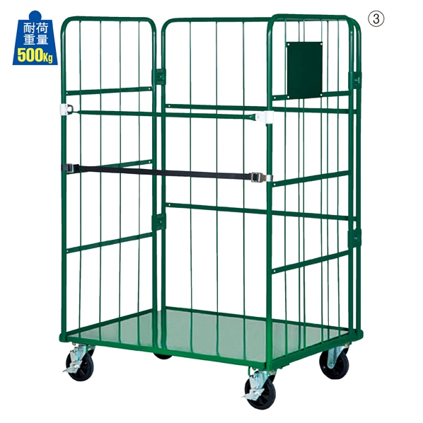 頑丈な底板スチールタイプのかご車です。 側面には黒板が付いているので、覚え書きに便利です。 荷物の落下や盗難防止に役立つ観音扉仕様。 L字に折りたたんでネスティング収納も可能。