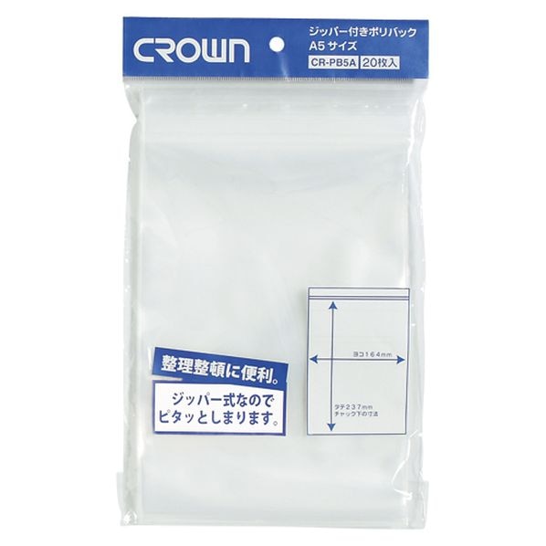【20枚】クラウン A5用ジッパー付きポリバック 5A-T CR-PB5A-T
