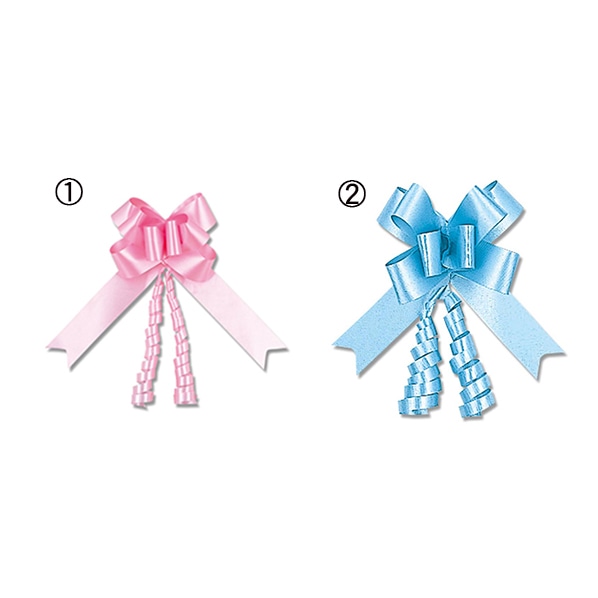 ワンタッチで美しいボウができあがります。中央の2本のたれをカーリングさせて、華やかに仕上げましょう。