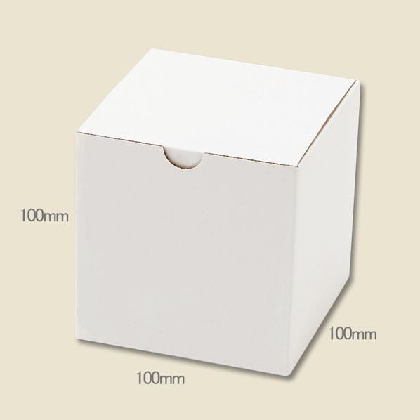 身フタ一体型でしっかりした厚み。表面が白い段ボール材質の無地箱です。