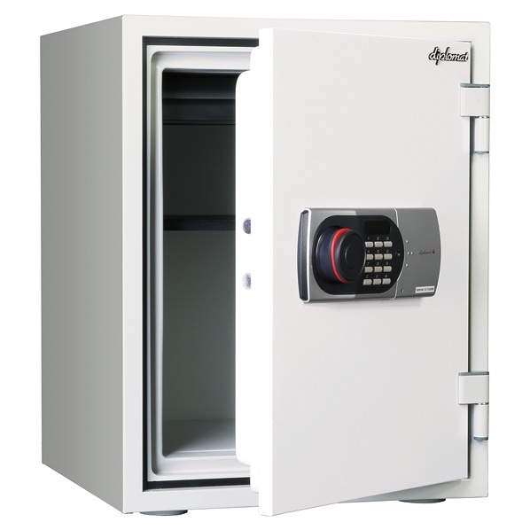 耐火・耐水性能を備えたコンパクトサイズの金庫。急加熱・落下試験合格の強固なボディ。セキュリティにも配慮した、便利な機能付き。(1)4~16桁までの暗証番号設定 (2)オン・オフ可能な警報アラーム内蔵 (3)2個の暗証番号を合わせて開錠するデュアルコントロール機能 (4)暗証番号の間に任意の番号を入れても開錠可能な覗き見防止のスクランブル機能 (5)便利で見易い液晶表示。液晶表示と操作音の有無も選択可能 (6)5回の暗証番号押し間違えで自動ロック作動 (7)電池の消耗を液晶で表示(8)鍵紛失の心配がない「キーレス」タイプ。