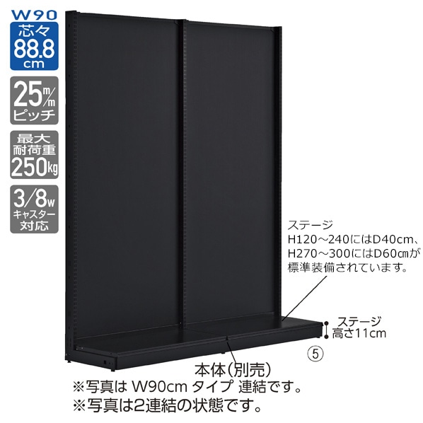 ステージH120~240にはD40cm、H270~300にはD60cmが標準装備されています。(ステージ高さ11cm)