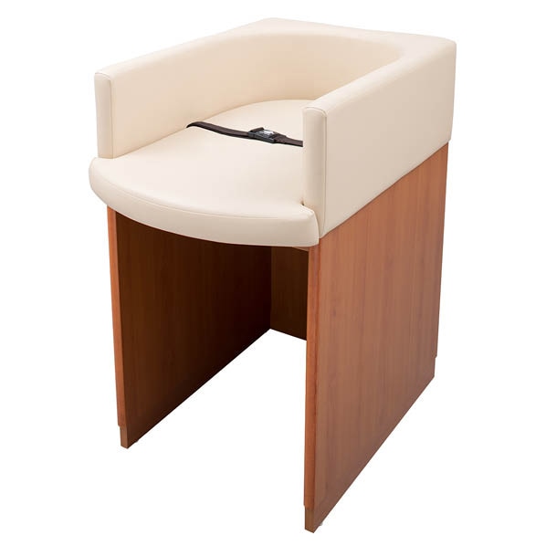 W55cmによるコンパクトタイプの据え置き型おむつ交換台。クッション性が高く丸みを帯びた形状で、マット部分とベルトは交換が可能です。