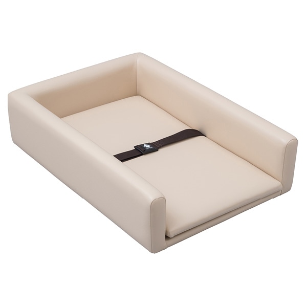 フローリングや畳の上で安心してオムツ交換ができる、フロア直置きタイプのおむつ交換台。マット部分とベルトは交換可能です。
