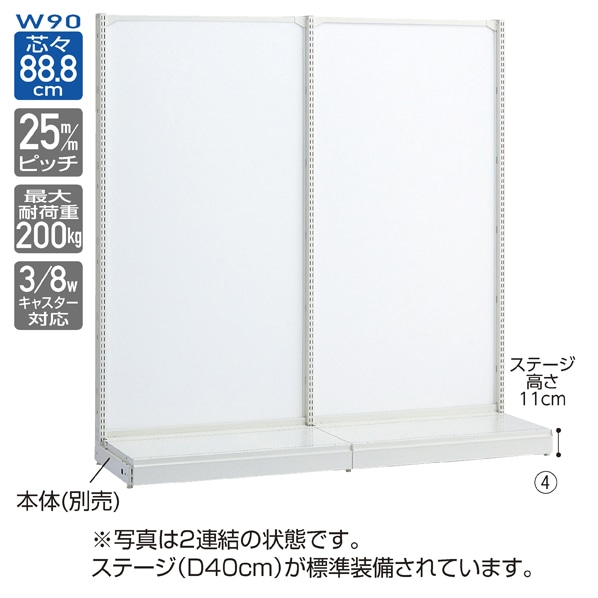 豊富なバリエーションでどんな売場づくりにも対応。スリムな柱で売場をスマートに演出 ステージ(D40cm)が標準装備されています。
