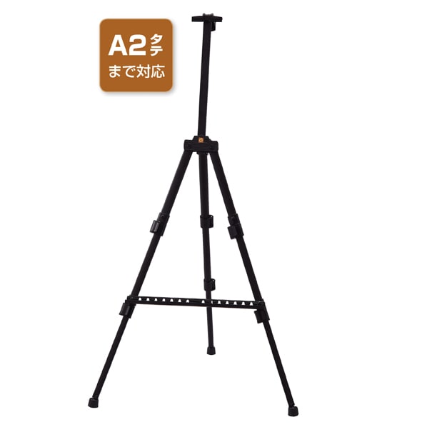 コンパクトに収納できる軽量3段イーゼル。 携帯に便利な収納用バッグ付き。