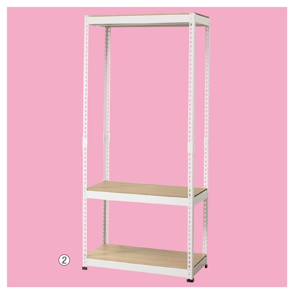 - フレーム:スチール製 粉体塗装 ハンガーバー:ステンレス 棚:繊維板(MDF) 塩化ビニルシート貼り