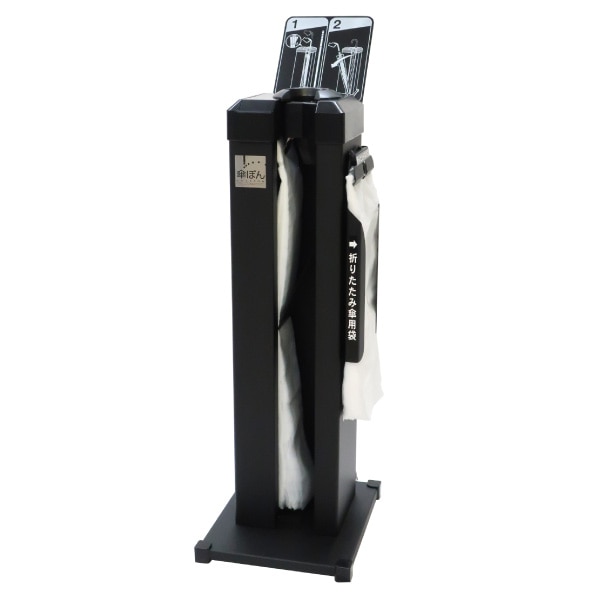 別注対応オリジナルカラーの一番人気である「ブラック」が定番品として傘ぽんラインナップに加わりました。スペシャル仕様にて主要部品もブラック塗装で統一し高級感があります。また通常はオプションでのご用意となる「折りたたみ傘ぽんホルダー」や「キャスター」もセット組されています。