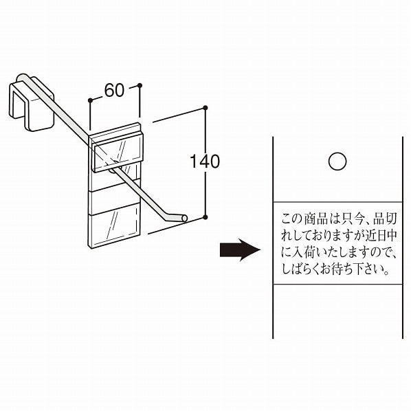 フックの一番後ろにかけるだけで品切れの案内ができます。