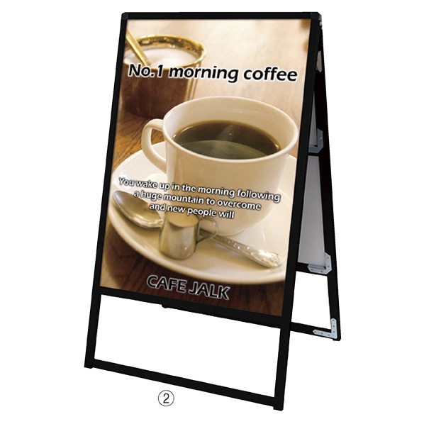 パネルがフレームと一体化したスタイリッシュなスタンド。大型サインに対応しています。