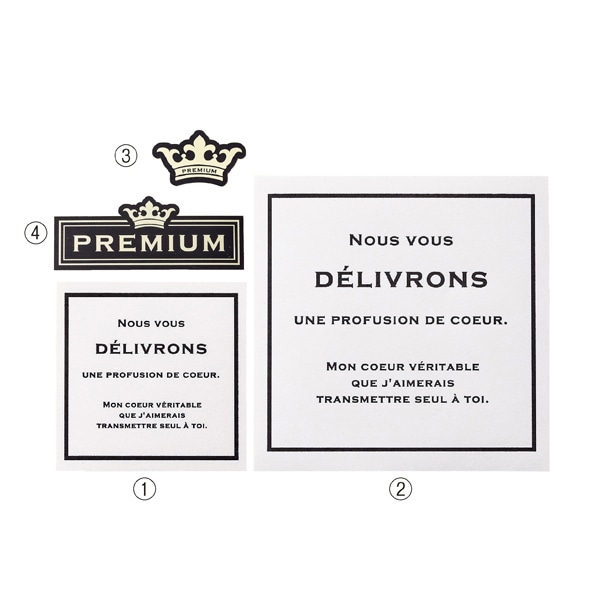 白と黒を基調としたフィエルテシリーズは、商品の魅力を引き立てて、よりおしゃれなものへと仕立てます。 ギフトのポイントになる大きめのシールです。