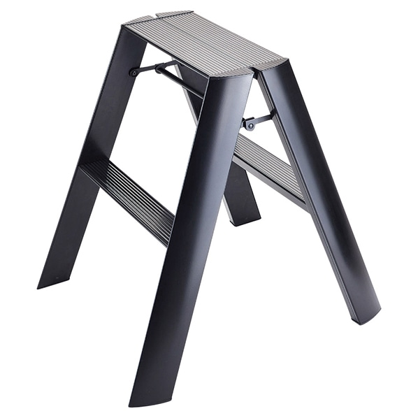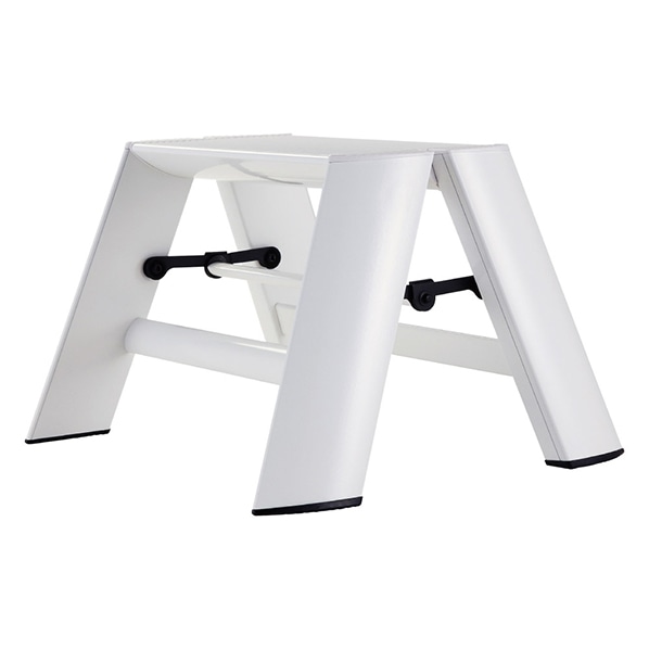 安全性だけでなくデザインにこだわったスタイリッシュな踏み台。 折りたたみ時自立します。