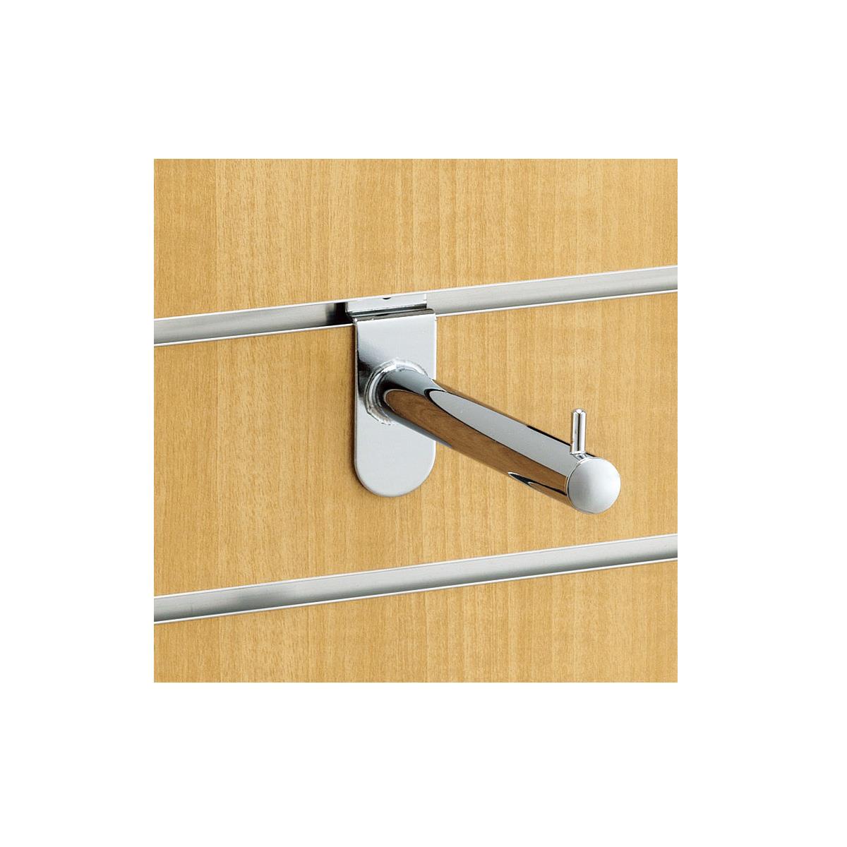 サポート(棚柱)はスリット(ブラケット取り付け穴)が25mm間隔で開いています。ブラケット(棚・バー受け)は25mmのスリットピッチに合わせて棚、バーなどそれぞれ専用のものを使用しています。