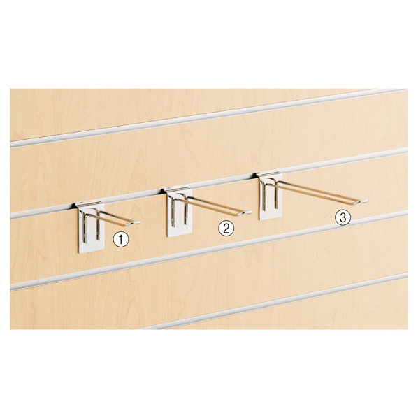 サポート(棚柱)はスリット(ブラケット取り付け穴)が25mm間隔で開いています。ブラケット(棚・バー受け)は25mmのスリットピッチに合わせて棚、バーなどそれぞれ専用のものを使用しています。