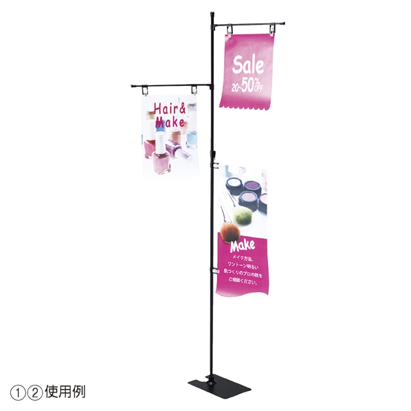 特殊加工パイプのため、軽量で倒れにくいフロアスタンドです。 横パイプはスライドパイプ部分の好きな位置に取り付け可能。 横パイプは自由に取り外し可能!