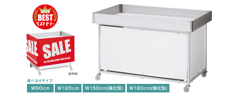 耐荷重はW150cmなら150kg、W180cmなら125kgで、重い商品のセールにも使えます。
