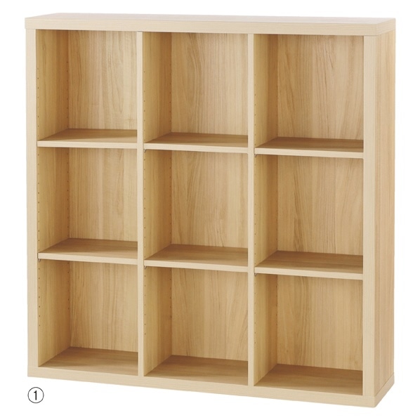 可動棚×(1)6枚(2)12枚付き 棚は3cm間隔で取り付けできます。 背面化粧仕上げ無し ※ハンマー必要
