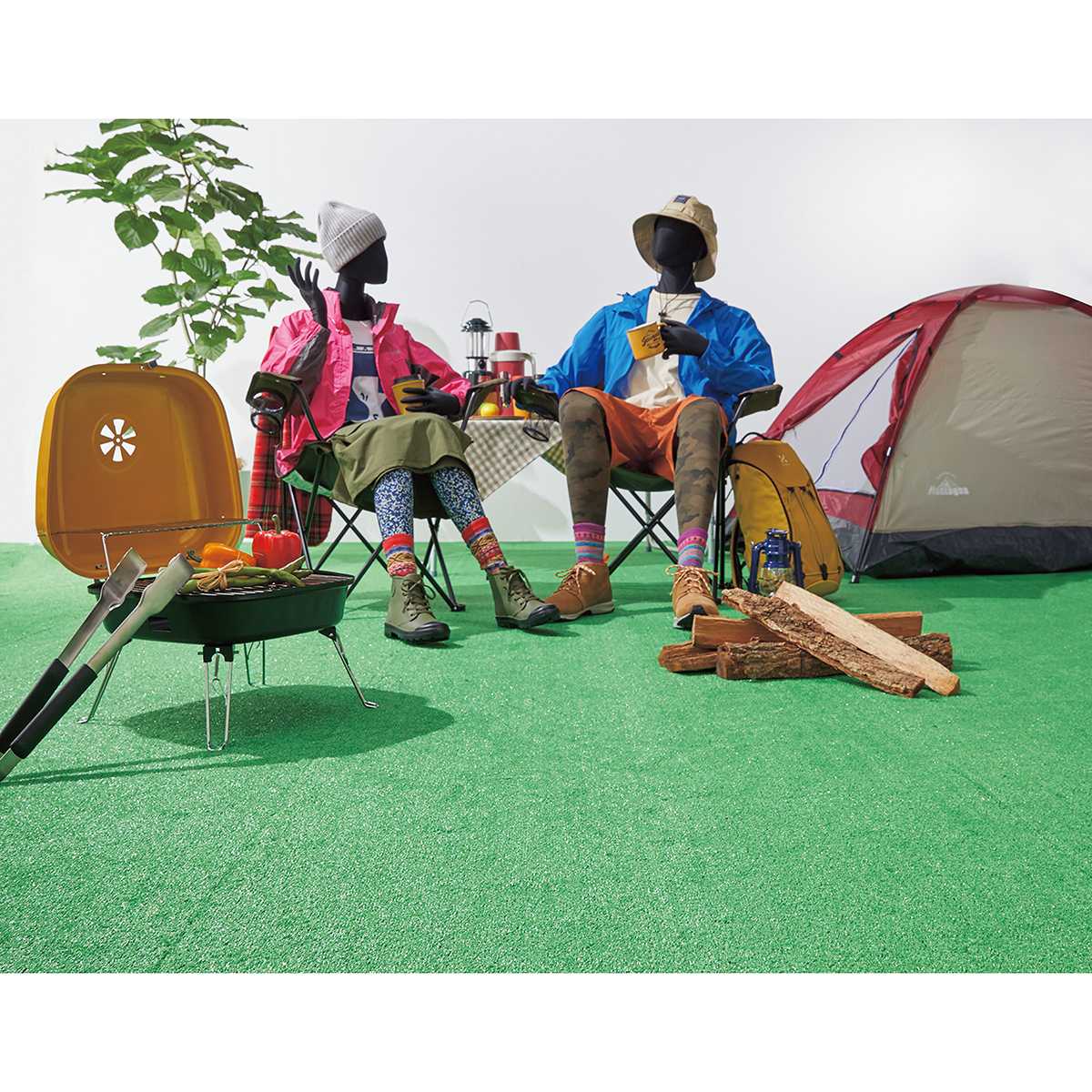 日差しの照り返しを少なくした素材で展示会場などのオアシスに。 足音を抑え、緑の屋上に最適になるよう天然芝を感じさせる草丈にしました。