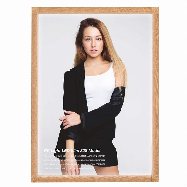 明るく目立つ内照式のポスターパネル。前面から開閉できるフロントオープンパネル。前面からフレーム4辺を開閉できるので、後ろに回らずにポスターやポップの差し替えが簡単にできます。フレームは高級感のある角形で落ち着きのある木目調。電源コードは強度のある太いコードを採用し、衝撃に強い置き型専用設計です。安心の日本製。