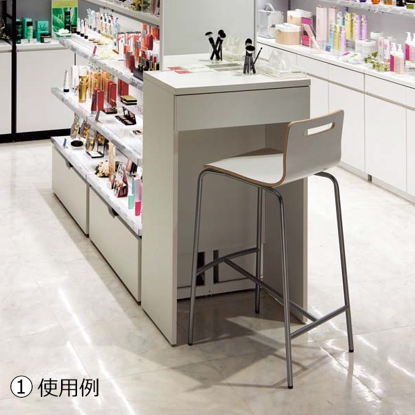 使いやすいメラミン化粧板のシートのカウンターチェア。表面は耐久性に優れ、滑りにくいエンボス仕上げのメラミン化粧板を使用しています。