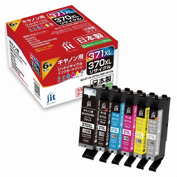 日本製リサイクルインク 。Canon対応。ジットのリサイクルインクは使い終わった純正インクカートリッジを回収し、独自で開発した最新技術を用いてクリーニングやインクの充填をして再度利用できるようにした環境配慮型製品です。ジットリサイクルインクは、グリーン購入法(国等による環境物品等の調達の推進等に関する法律)に適合している、環境にやさしい商品。カートリッジ自体を再利用することにより、ごみ排出削減など地球環境に貢献した商品です。ジットのリサイクルインクの不良率は0.01%以下の安心の日本製で高品質。