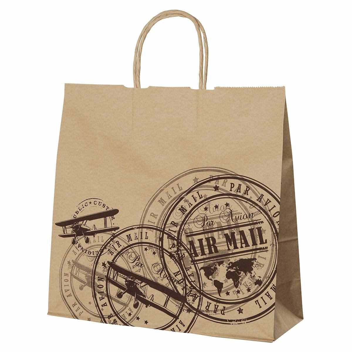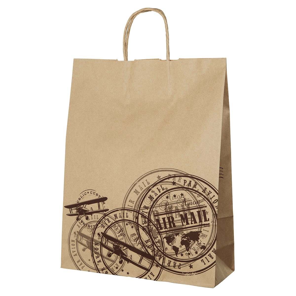 高品質ながら安い価格で業務用に最適なクラフト手提げ紙袋をご用意しました。エアメールのスタンプと双翼機をモチーフにデザインした手提げ袋です。