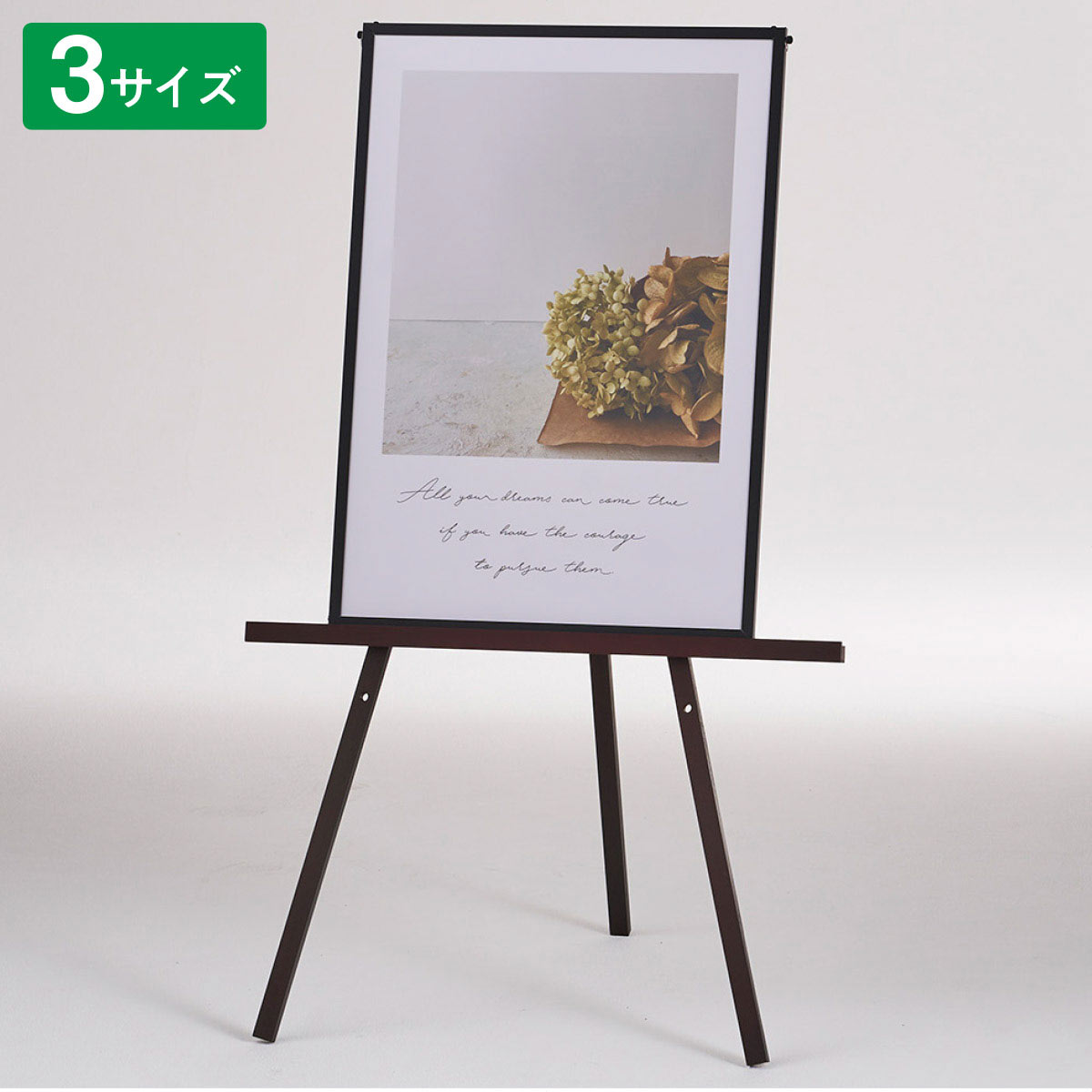 ポスター・写真・ポップなど幅広く利用できる軽くて丈夫な黒のアルミパネルと木製ブラウンイーゼルのセット。単品ごとでのご購入よりもお得にお買い求めいただけます!イーゼルはコンパクトに折りたためるので、収納にも便利です。