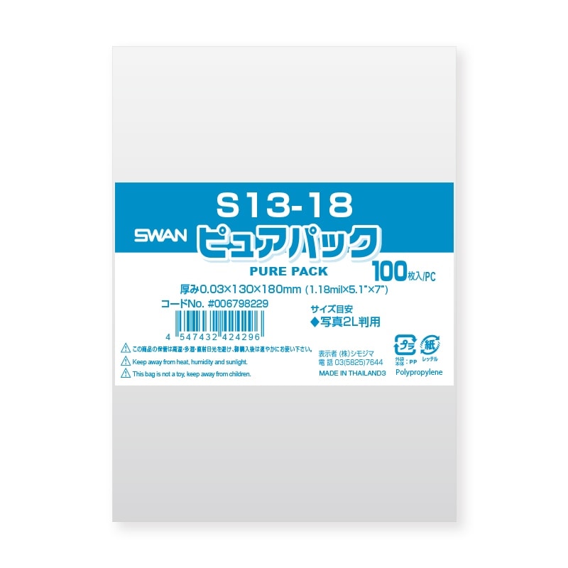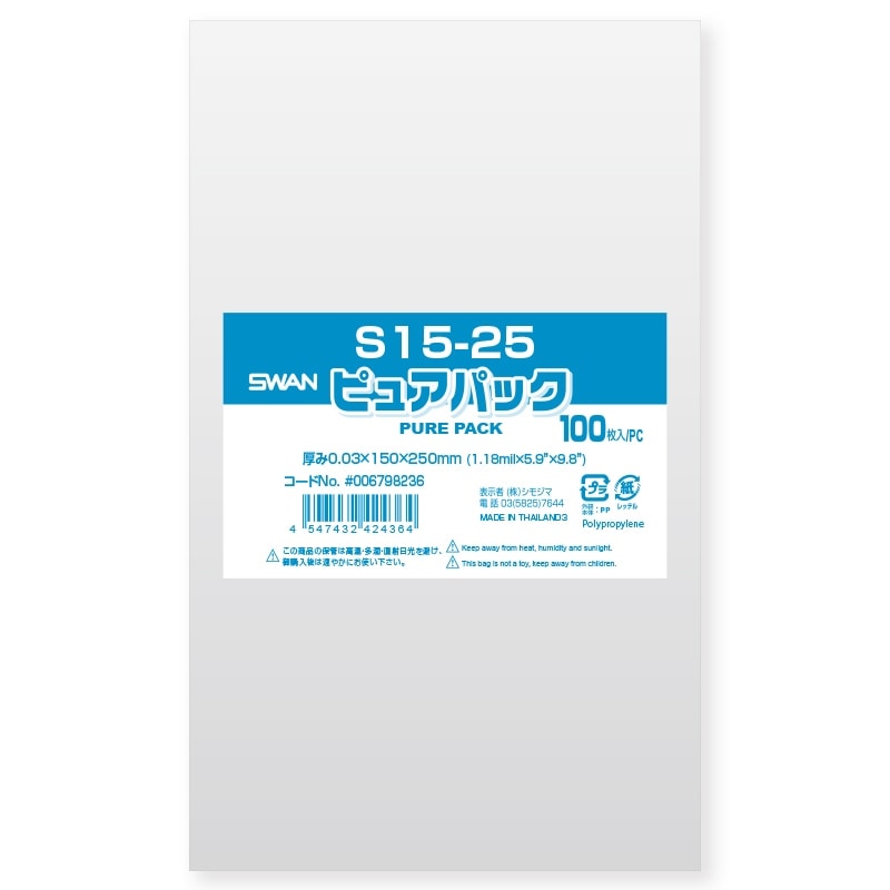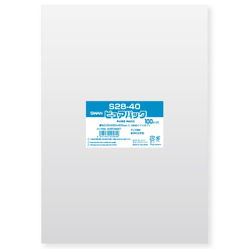 ピュアパックはSWANブランドのOPP袋で、海外製のフィルムを使用することにより低価格を実現させた価格重視の透明袋シリーズです。