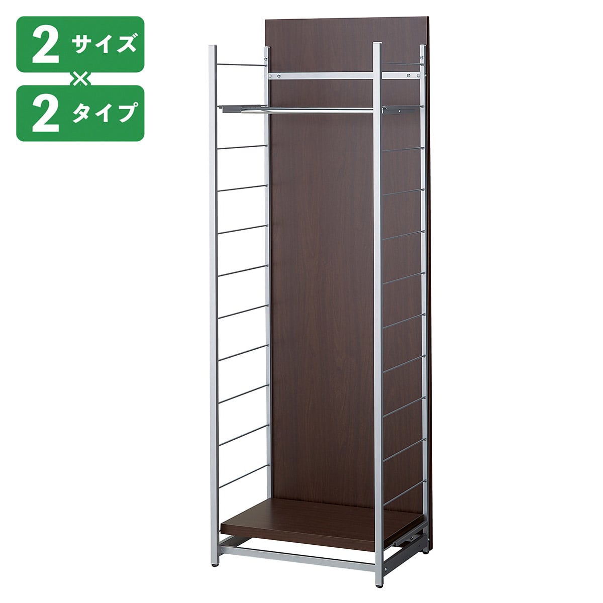 (1)(3)可動棚・ハンガーパイプ×各1付き(2)(4)可動棚×4付き 棚・ハンガーパイプは14cm間隔で取り付けできます。 アジャスター付き