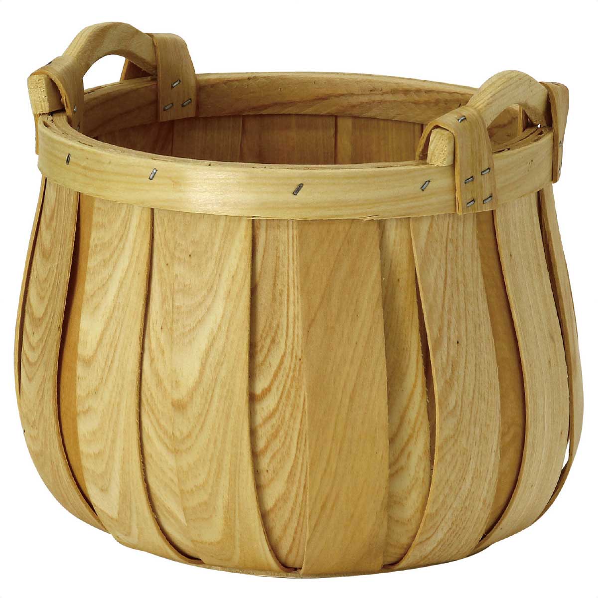 天然素材ならではの素朴感がありながらシックな空間にもよく合う鉢(バスケット)です。薄くスライスした沼杉を、職人が丁寧に手作りで組み上げた洋梨のようなフォルムのバスケットです。