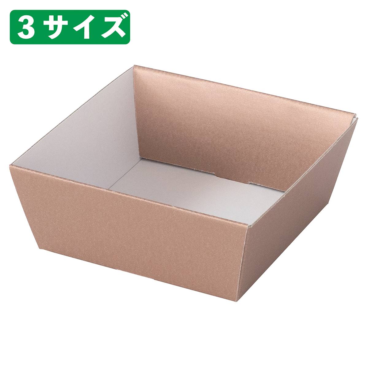 上品かつ落ち着いたカラーがワンランク上のギフト感を演出する紙製ギフトトレーです。蓋付きの箱では収まり切らない商品はトレーを使うのがおすすめ。あふれそうな詰め合わせも、トレーならお得感や豪華さのアピールになります。透明のOPP袋やOPPロールなどを使った中身を見せるラッピングで、ディスプレイとしても大活躍してくれます。ギフトに使いやすい人気サイズです。