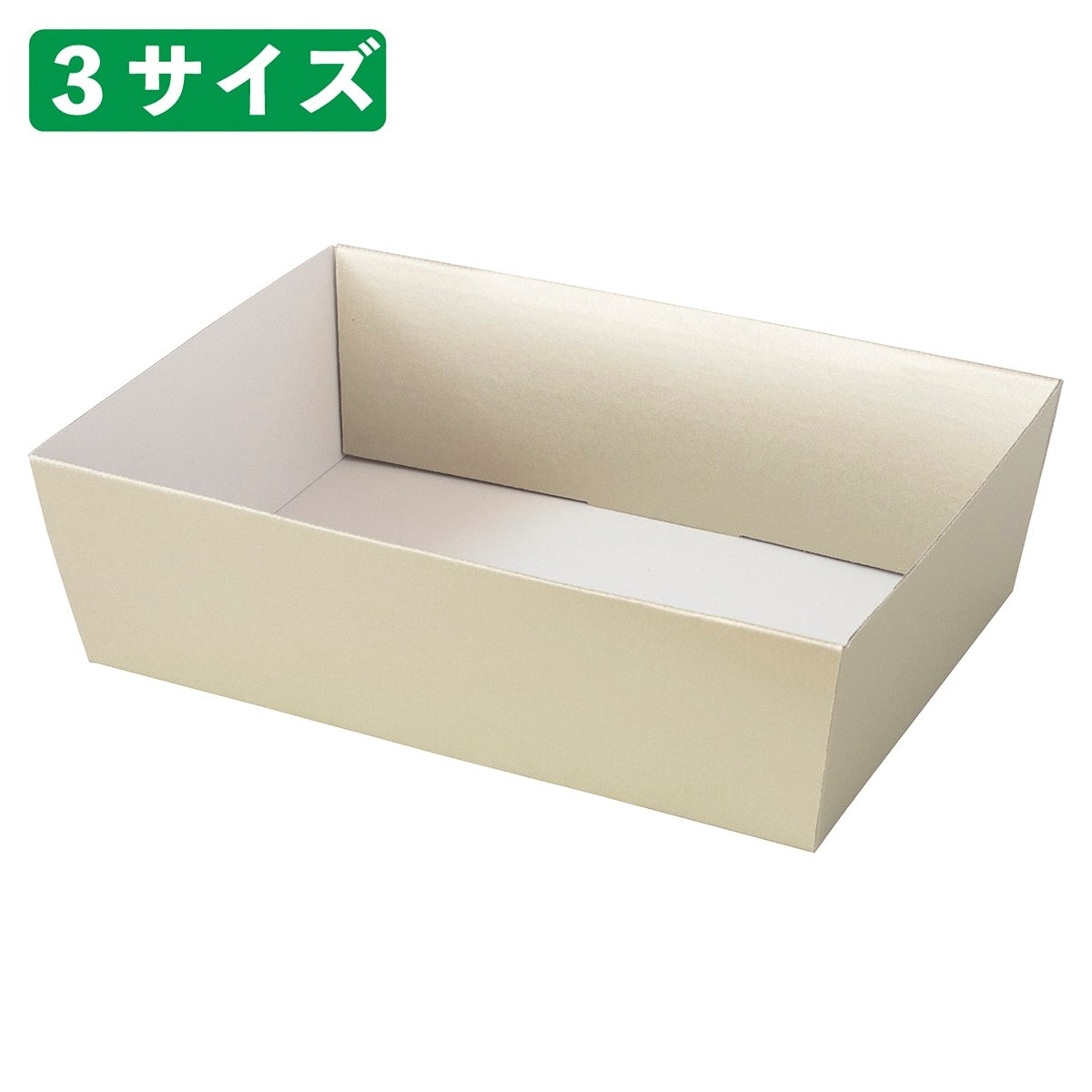 上品で爽やかなグリーンががワンランク上のギフト感を演出する紙製ギフトトレーです。蓋付きの箱では収まり切らない商品はトレーを使うのがおすすめ。あふれそうな詰め合わせも、トレーならお得感や豪華さのアピールになります。透明のOPP袋やOPPロールなどを使った中身を見せるラッピングで、ディスプレイとしても大活躍してくれます。ギフトに使いやすい人気サイズです。