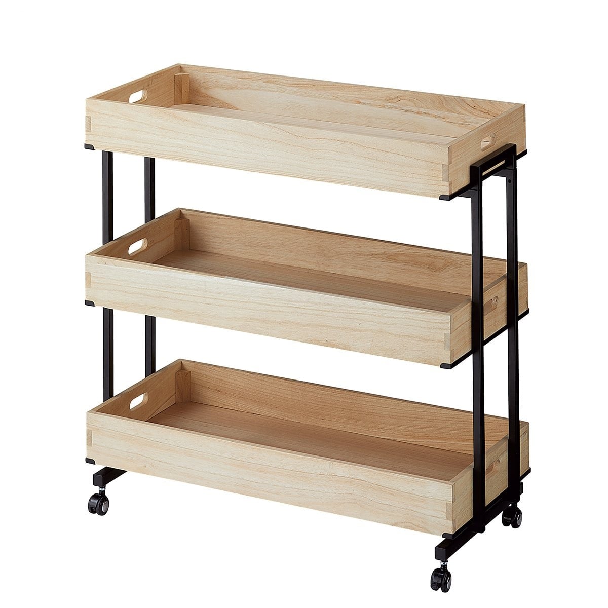 【什器セットまるごと購入】木製トレー棚付きワゴン BK 3段セット〔ストエキオリジナル〕