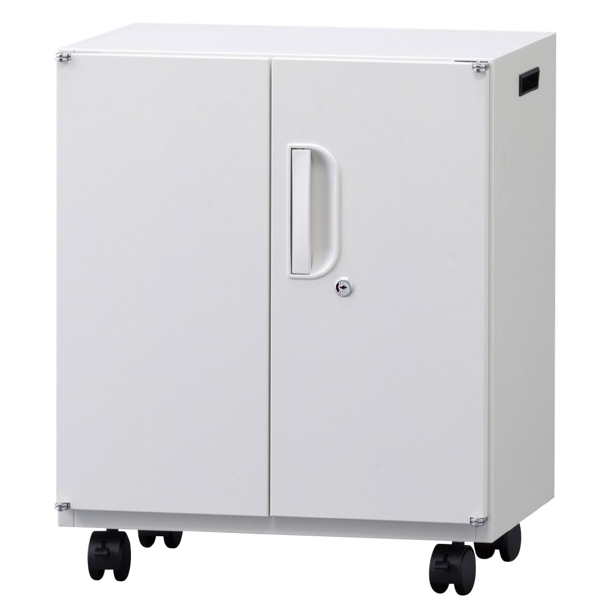鍵付きの両開きワゴン。キャスター付でスムーズに移動が可能です。