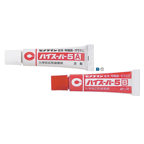 金属・ガラスなどの硬質材に。5分で硬化し始め約1時間で接着。