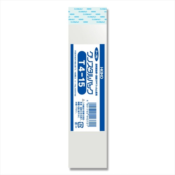 クリスタルパックは国産原反を使用した高品質で安心、透明度に優れた袋です。 テープ付きタイプです。