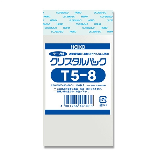 クリスタルパックは国産原反を使用した高品質で安心、透明度に優れた袋です。 テープ付きタイプです。