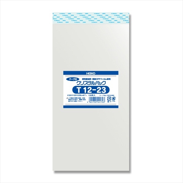 クリスタルパックは国産原反を使用した高品質で安心、透明度に優れた袋です。 テープ付きタイプです。