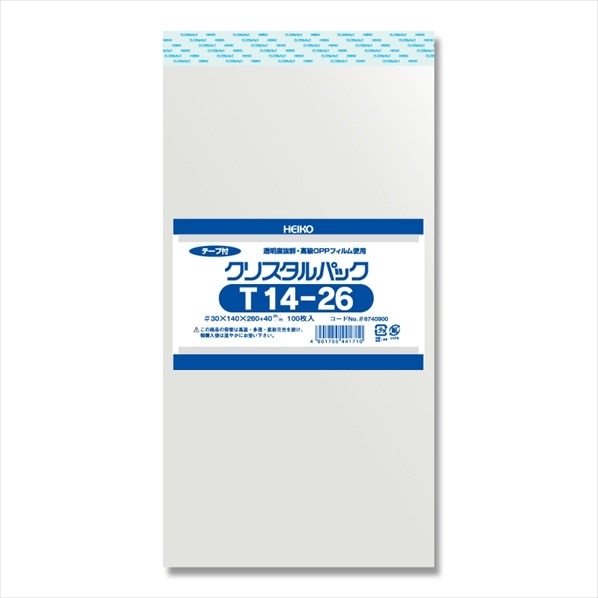 クリスタルパックは国産原反を使用した高品質で安心、透明度に優れた袋です。 テープ付きタイプです。
