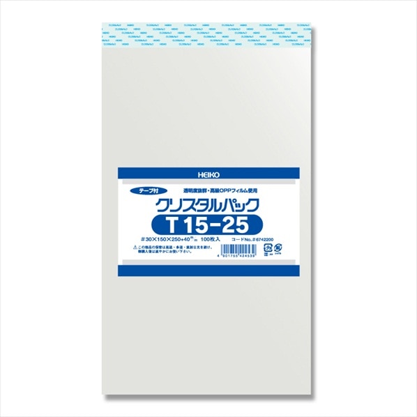 クリスタルパックは国産原反を使用した高品質で安心、透明度に優れた袋です。 テープ付きタイプです。