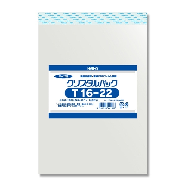 クリスタルパックは国産原反を使用した高品質で安心、透明度に優れた袋です。 テープ付きタイプです。